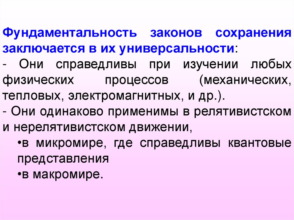 Фундаментальность законов сохранениязаключается в их универсальности: