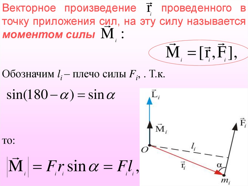 Обозначим li – плечо силы Fi, . Т.к.