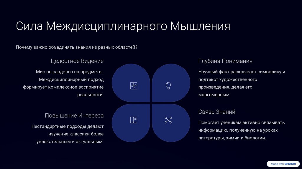Ключевые ВыводыМежпредметный подход — это инструмент для развития интеллектуальной гибкости и