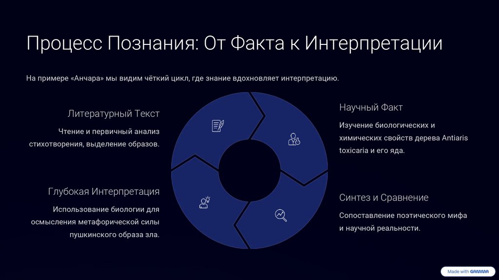 Процесс Познания: От Факта к ИнтерпретацииНа примере «Анчара» мы видим чёткий цикл, где знание вдохновляет интерпретацию.