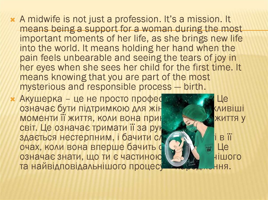 A midwife is not just a profession. It’s a mission. Itmeans being a support for a woman during the most