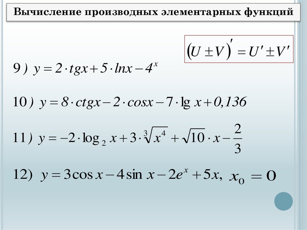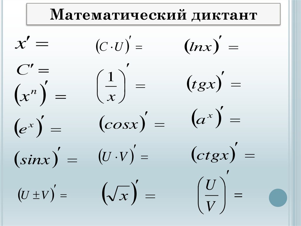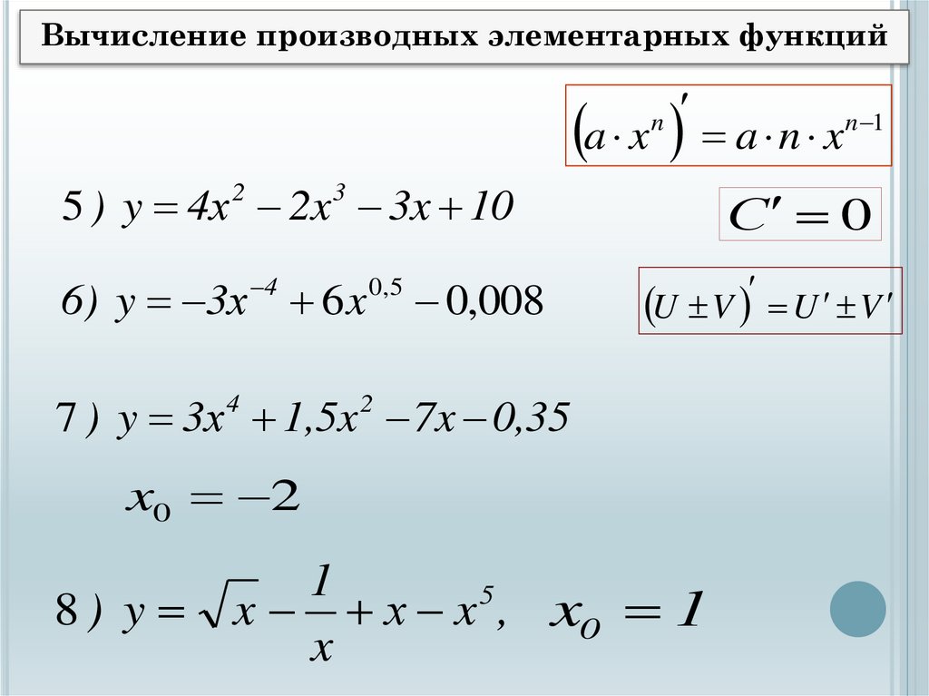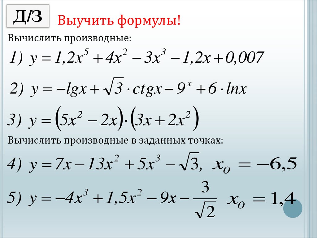 Подготовка к контрольной работе1) Найти чему равна производная: