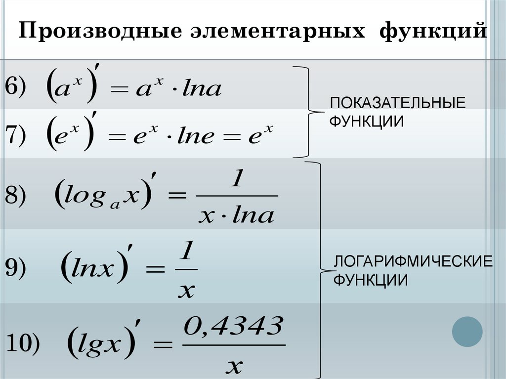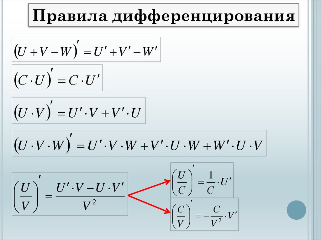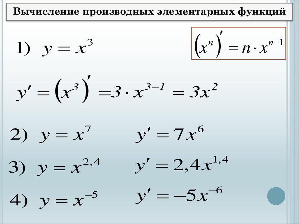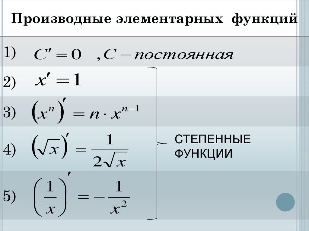 Подготовка к контрольной работе1) Найти чему равна производная: