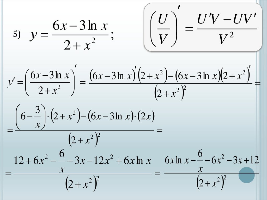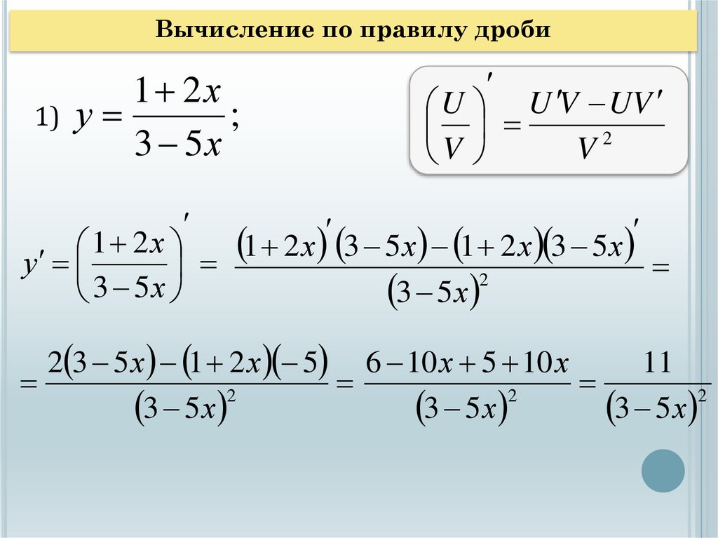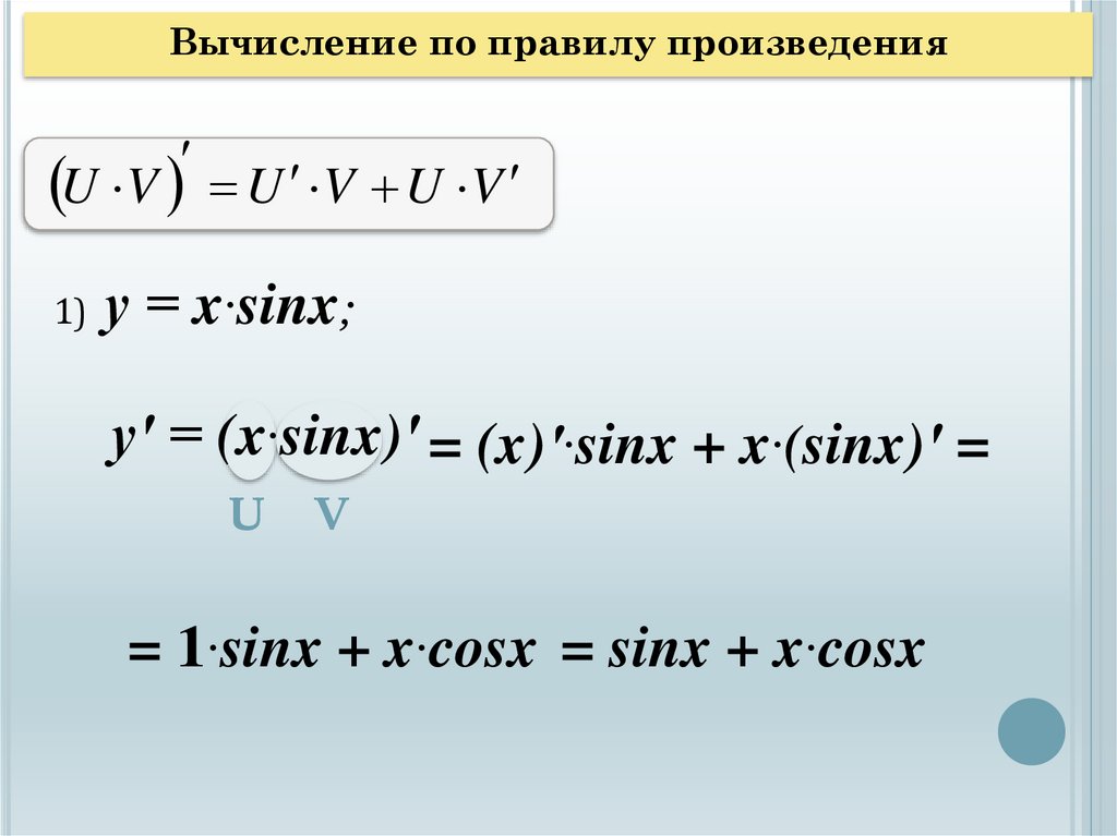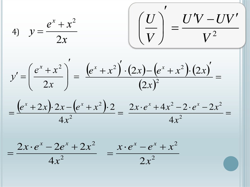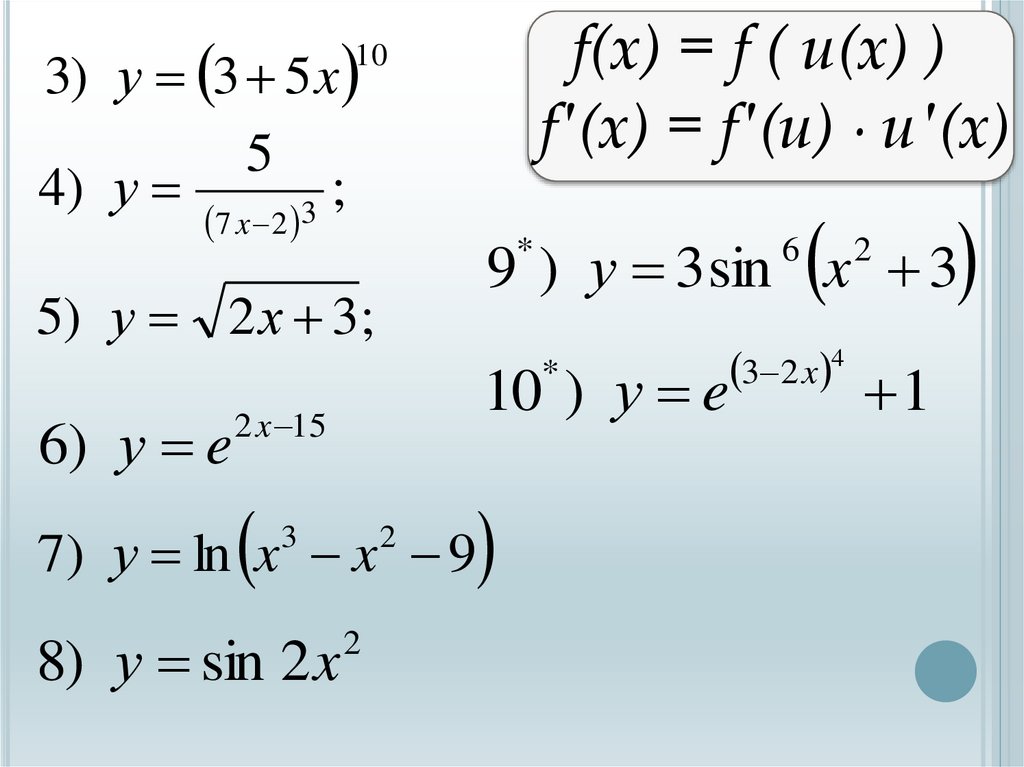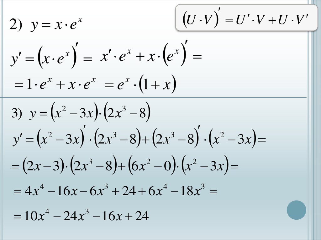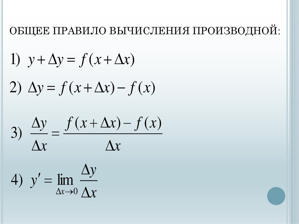 ОБЩЕЕ ПРАВИЛО ВЫЧИСЛЕНИЯ ПРОИЗВОДНОЙ:1) y y f ( x x)