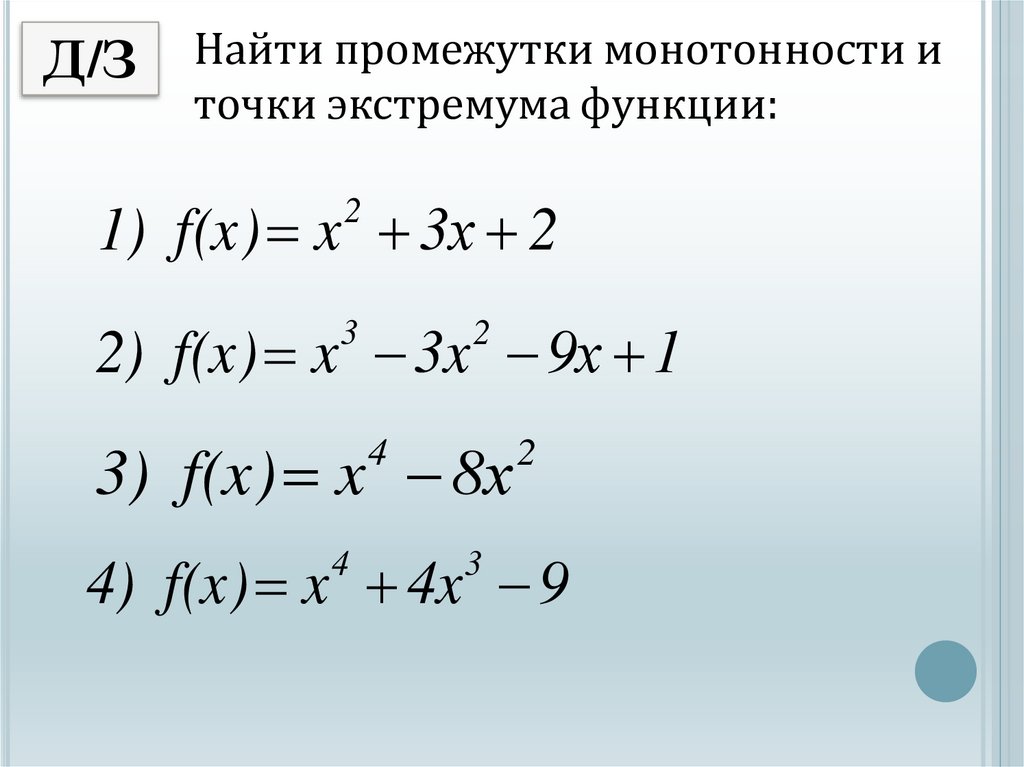 ЗАДАНИЕ ДЛЯ САМОСТОЯТЕЛЬНОГО РЕШЕНИЯИССЛЕДОВАТЬ ФУНКЦИЮ С ПОМОЩЬЮ ПРОИЗВОДНОЙ И