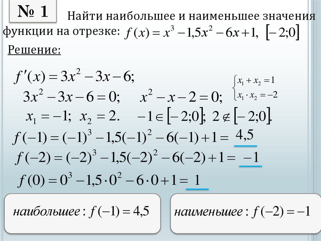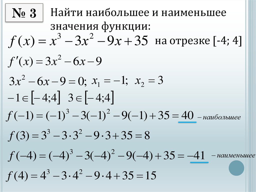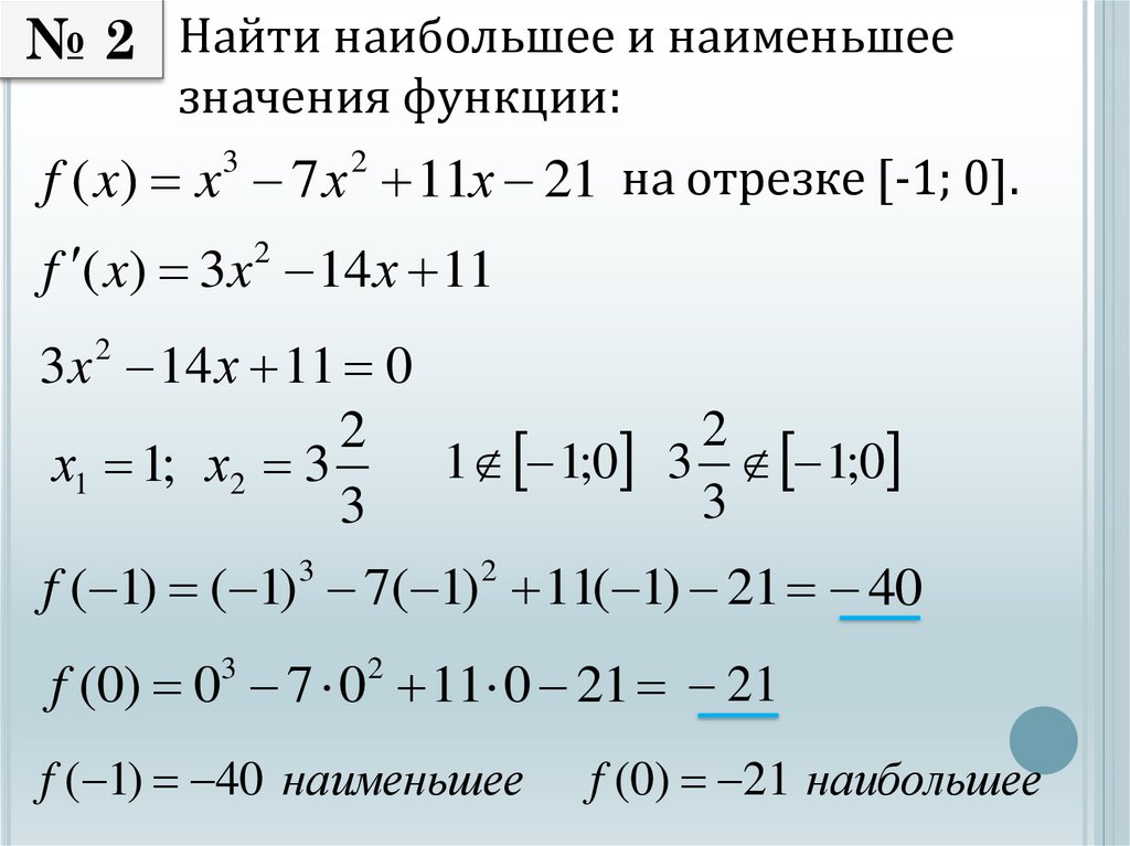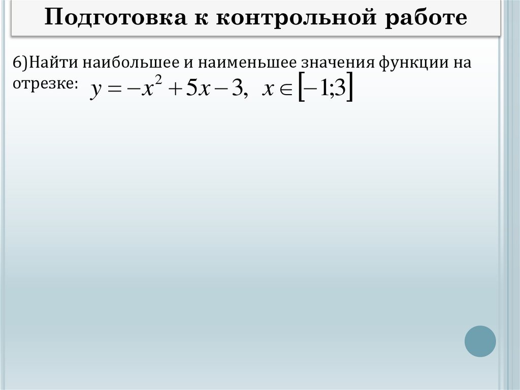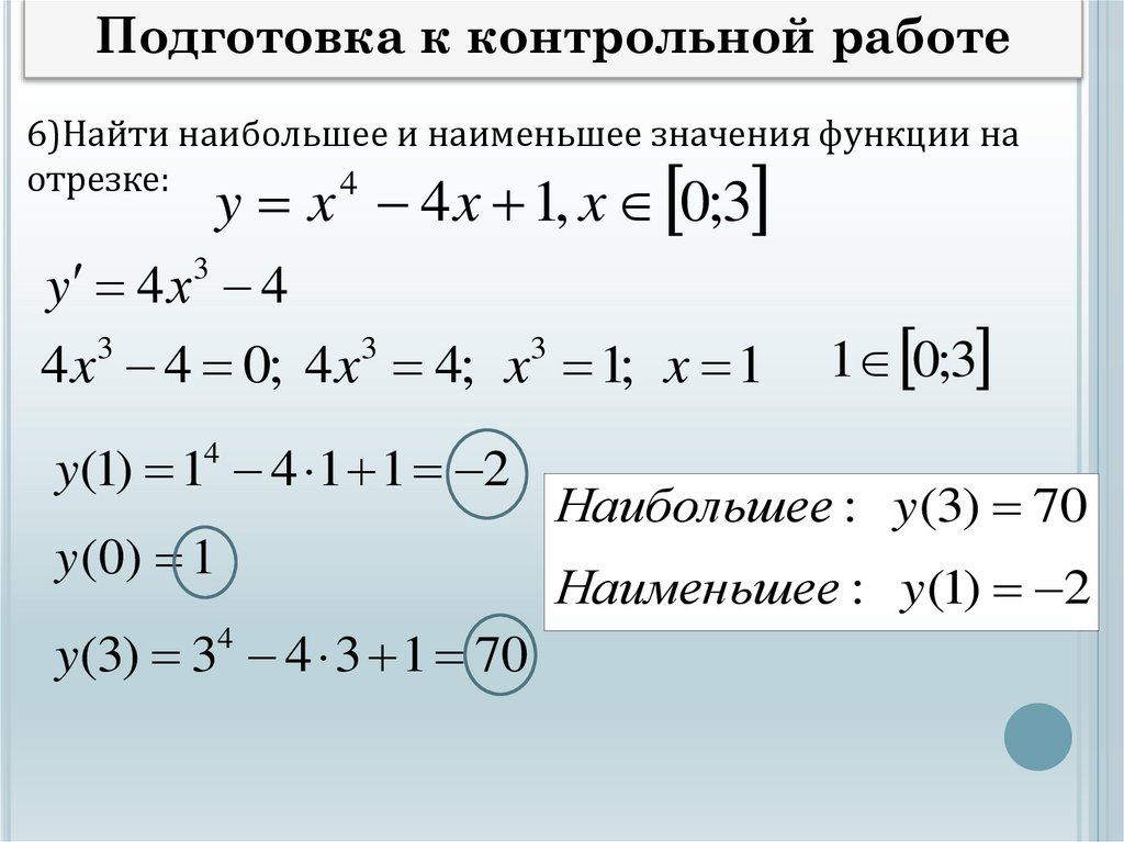 Подготовка к контрольной работе6)Найти наибольшее и наименьшее значения функции на