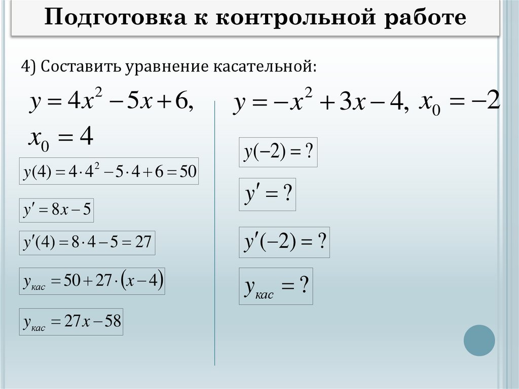 Подготовка к контрольной работе4) Составить уравнение касательной: