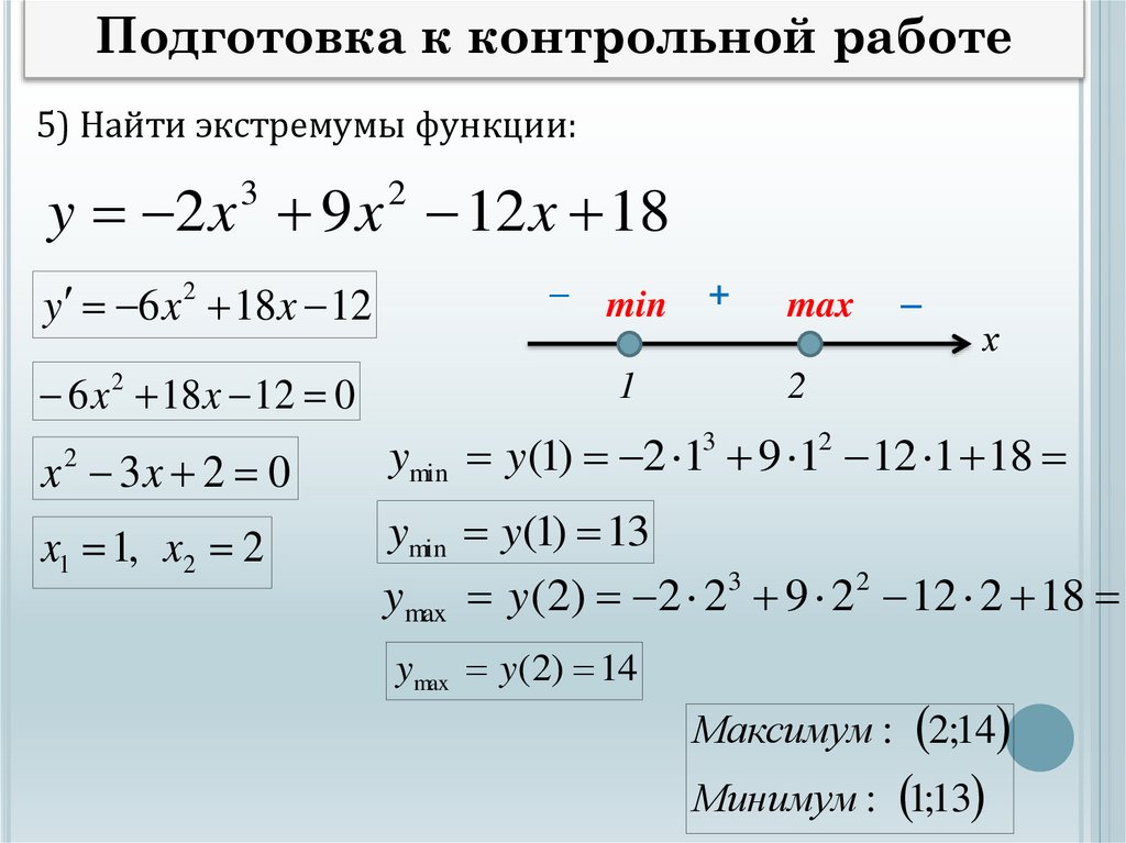 Подготовка к контрольной работе5) Найти экстремумы функции: