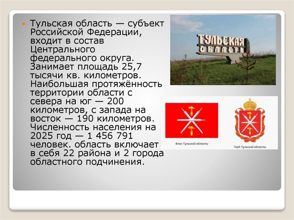Тульская область — субъектРоссийской Федерации,