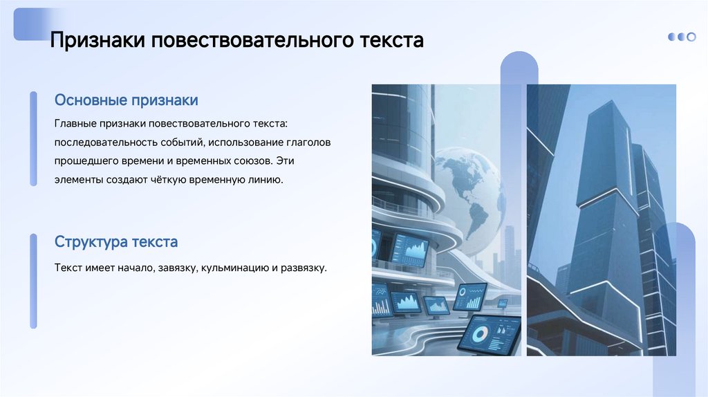 Признаки повествовательного текстаОсновные признаки