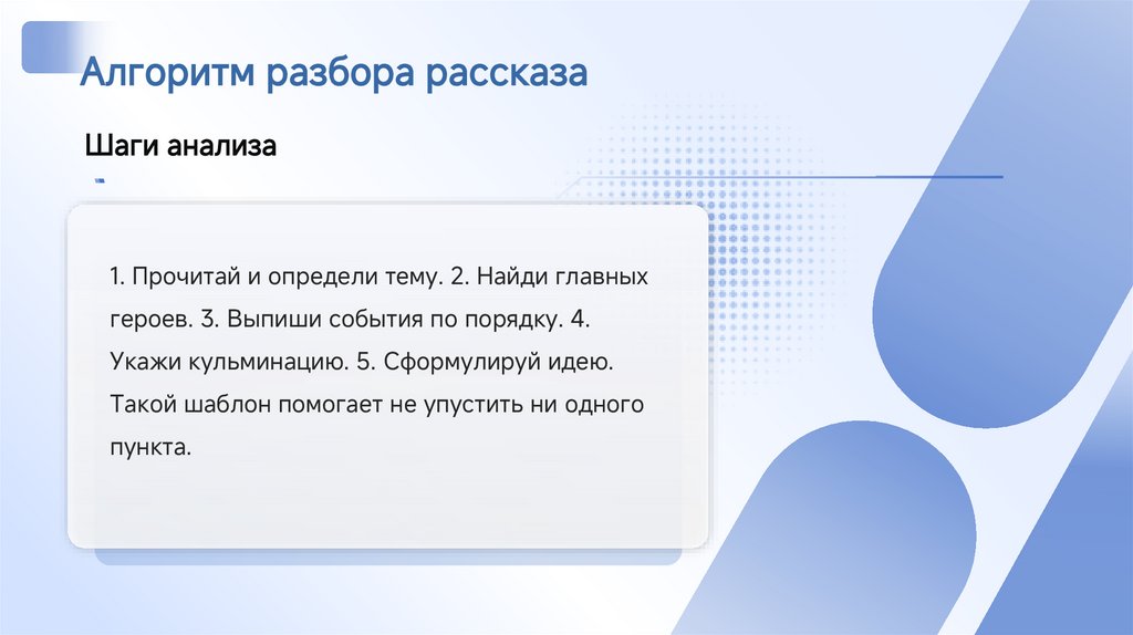 Алгоритм разбора рассказаШаги анализа