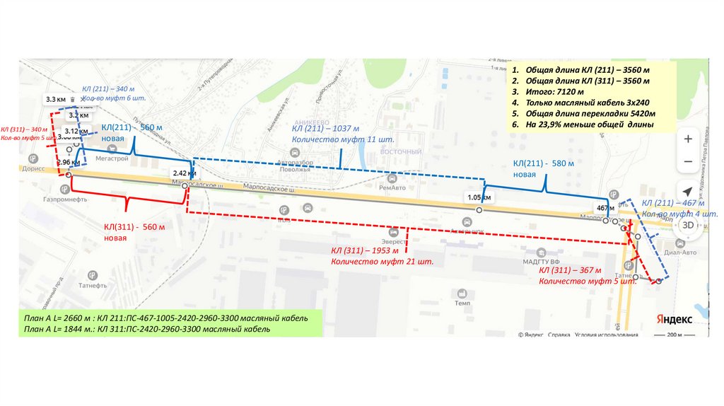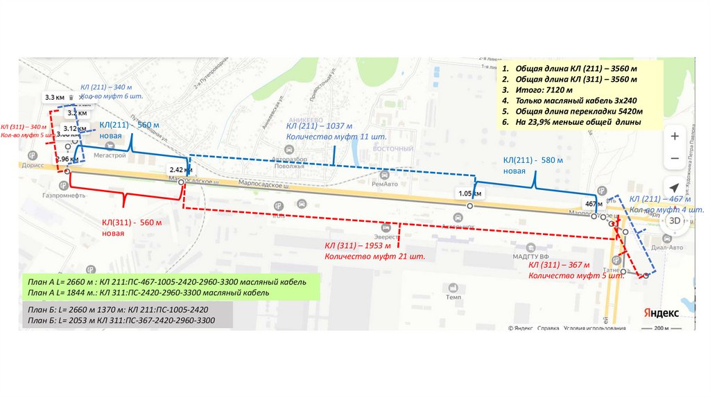 План Б: L= 2053 м КЛ 311:ПС-367-2420-2960-3300