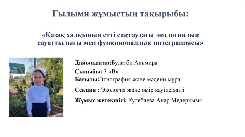 Жұмыс жетекшісі: Кулебаева Анар Медерқызы