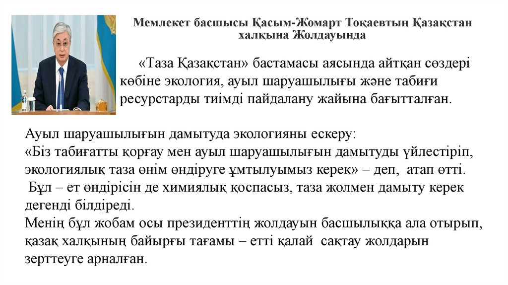 Менің бұл жобам осы президенттің жолдауын басшылыққа ала отырып,