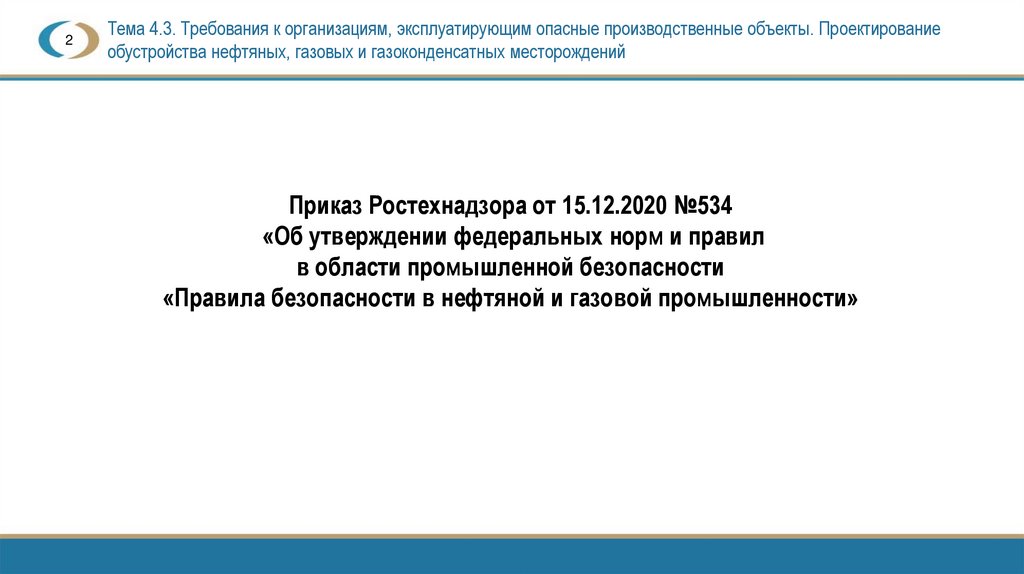 2Тема 4.3. Требования к организациям, эксплуатирующим опасные производственные объекты. Проектирование