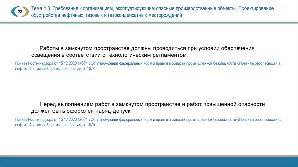 Приказ Ростехнадзора от 15.12.2020 №534 «Об утверждении федеральных норм и правил в области промышленной безопасности «Правила безопасности в