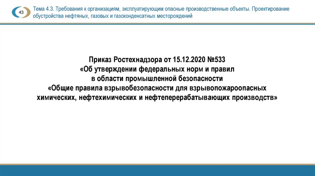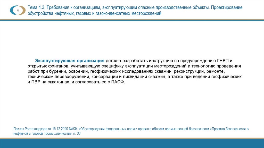 4Тема 4.3. Требования к организациям, эксплуатирующим опасные производственные объекты. Проектирование