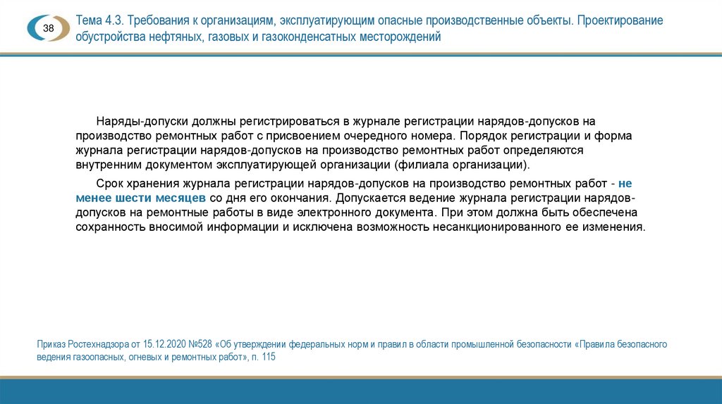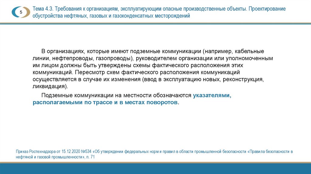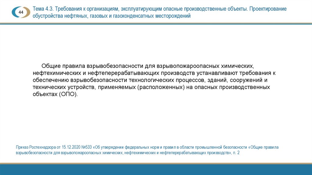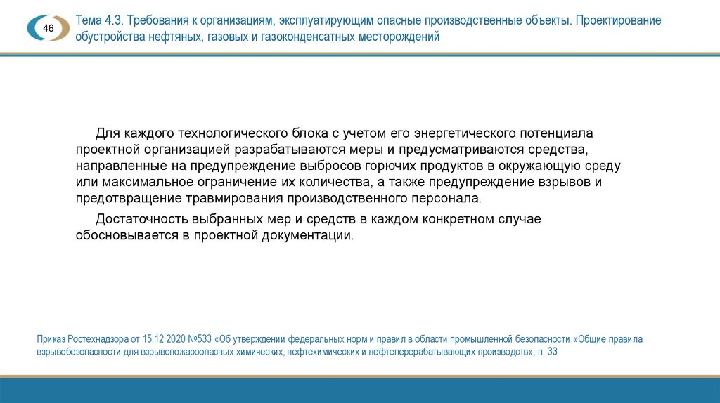 5Тема 4.3. Требования к организациям, эксплуатирующим опасные производственные объекты. Проектирование