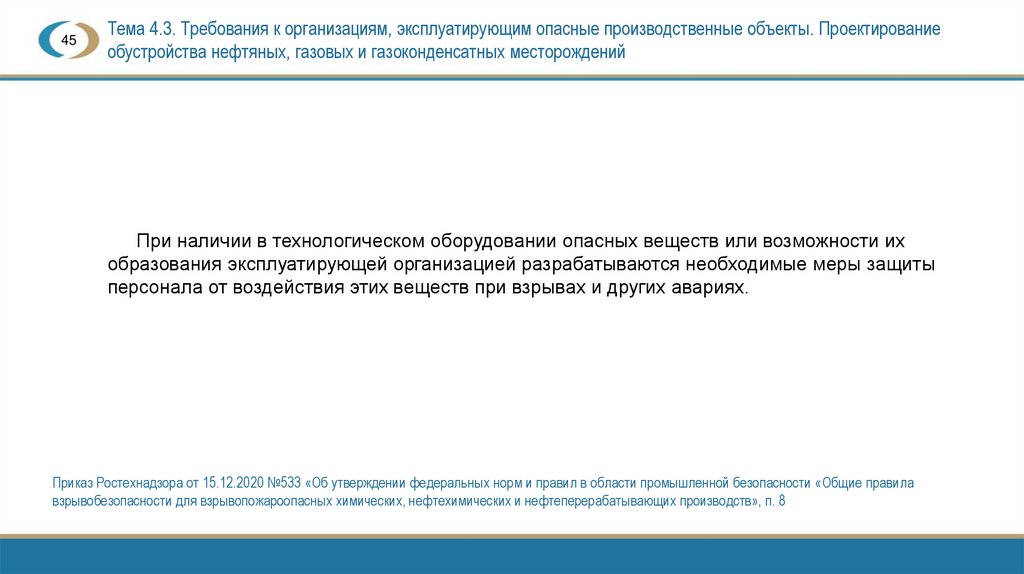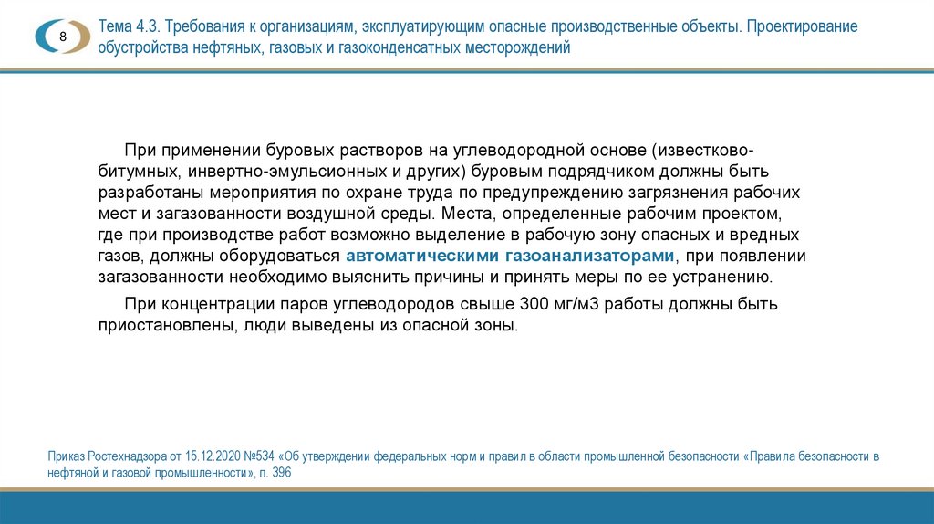 8Тема 4.3. Требования к организациям, эксплуатирующим опасные производственные объекты. Проектирование