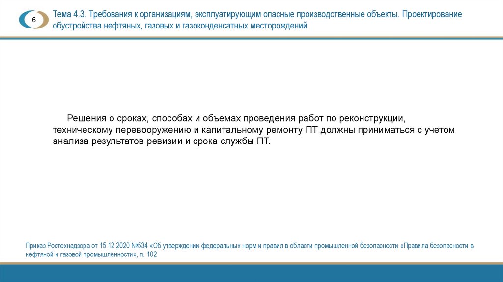 6Тема 4.3. Требования к организациям, эксплуатирующим опасные производственные объекты. Проектирование