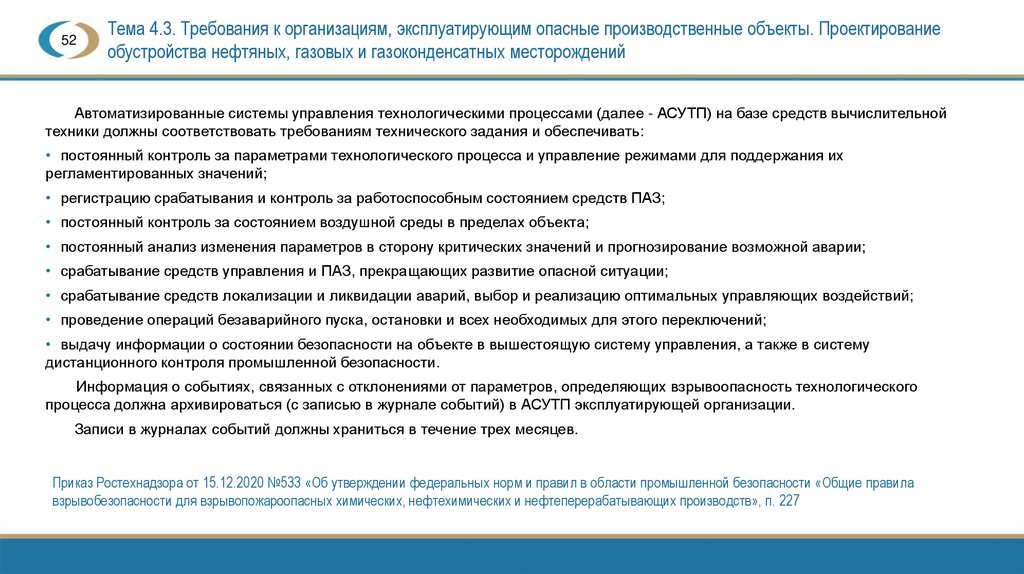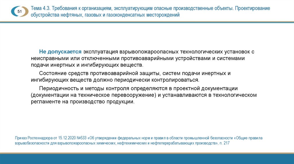 51Тема 4.3. Требования к организациям, эксплуатирующим опасные производственные объекты. Проектирование
