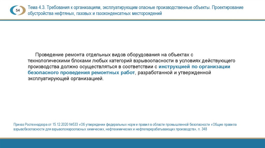 54Тема 4.3. Требования к организациям, эксплуатирующим опасные производственные объекты. Проектирование