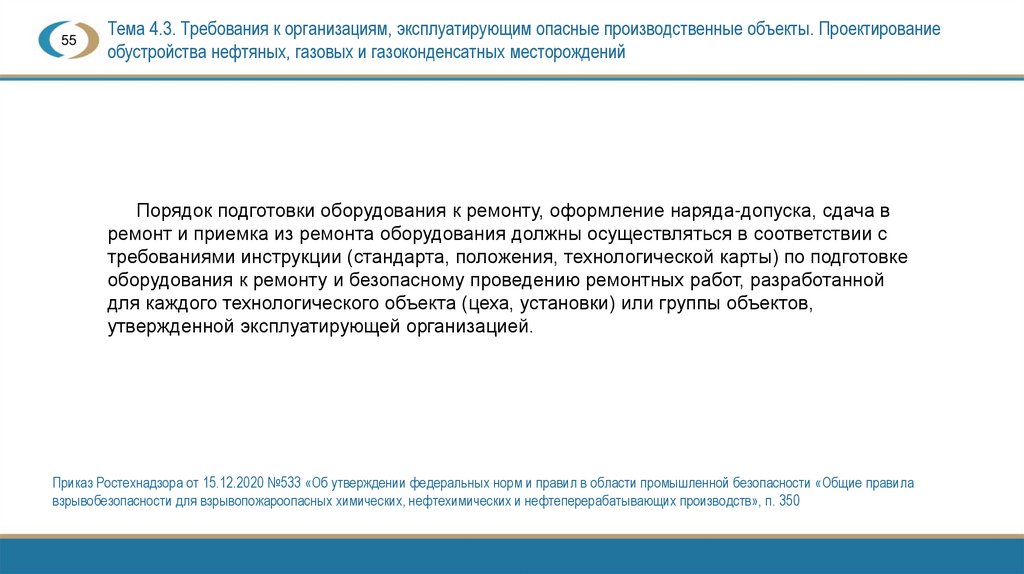 55Тема 4.3. Требования к организациям, эксплуатирующим опасные производственные объекты. Проектирование