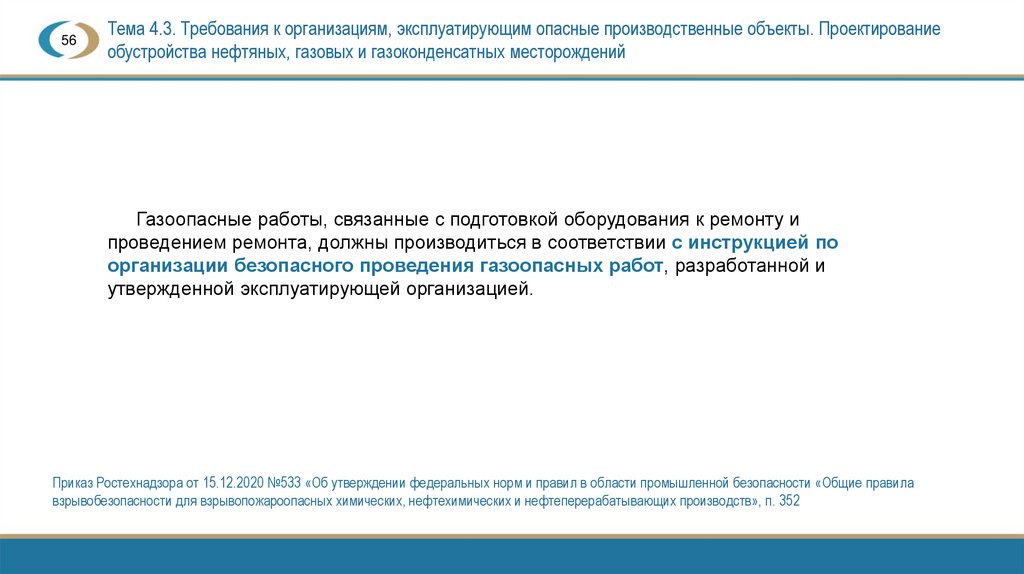 56Тема 4.3. Требования к организациям, эксплуатирующим опасные производственные объекты. Проектирование