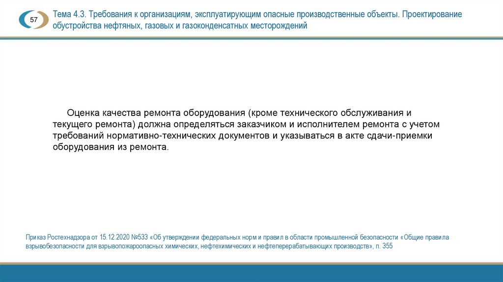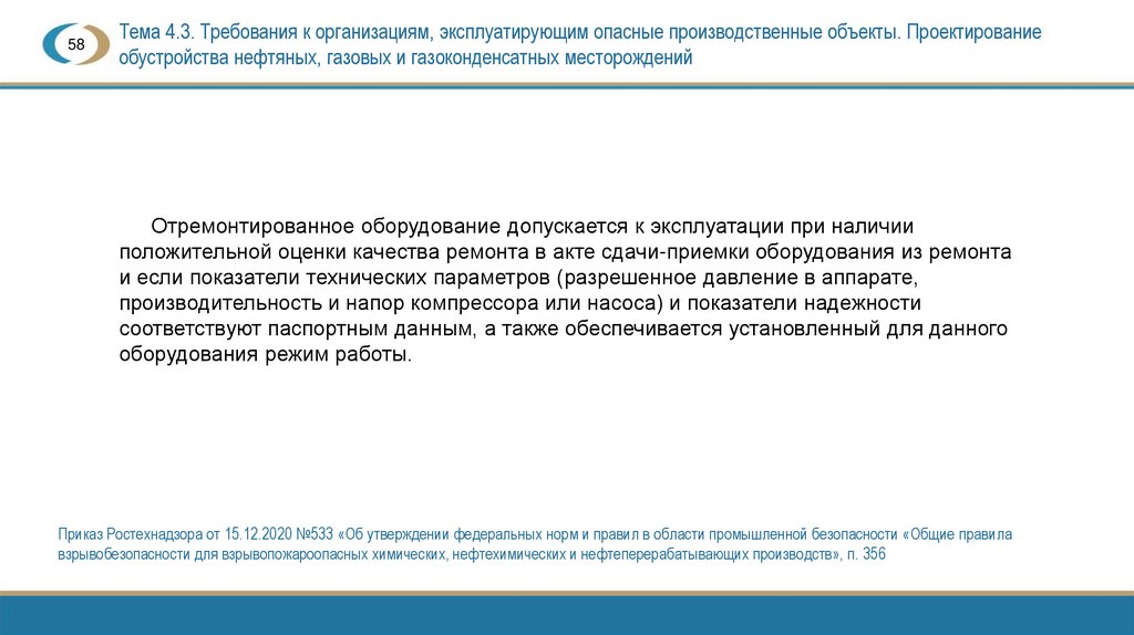 57Тема 4.3. Требования к организациям, эксплуатирующим опасные производственные объекты. Проектирование