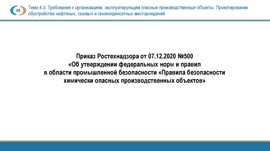 59Тема 4.3. Требования к организациям, эксплуатирующим опасные производственные объекты. Проектирование