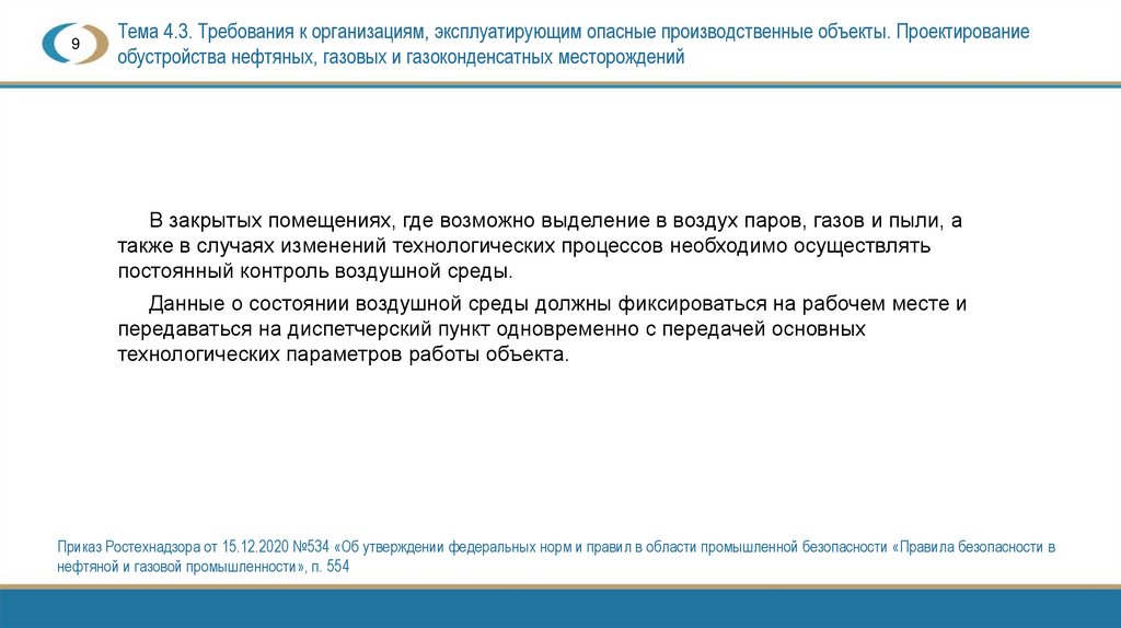 9Тема 4.3. Требования к организациям, эксплуатирующим опасные производственные объекты. Проектирование