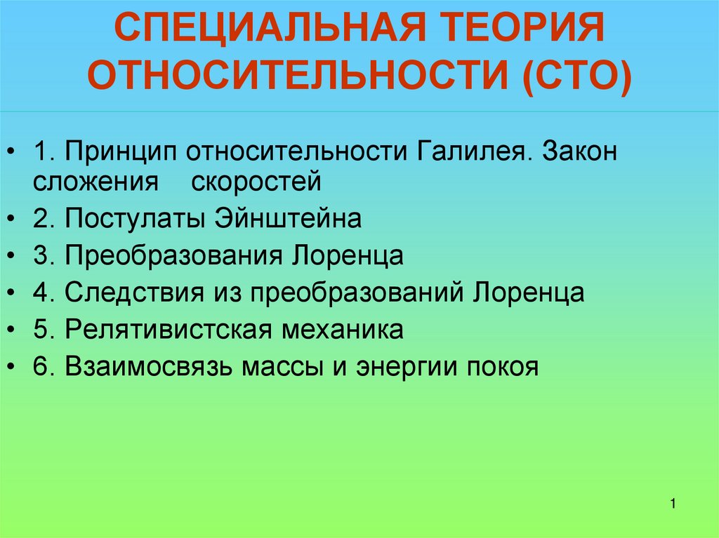 1. СПЕЦИАЛЬНАЯ ТЕОРИЯ ОТНОСИТЕЛЬНОСТИ (СТО)