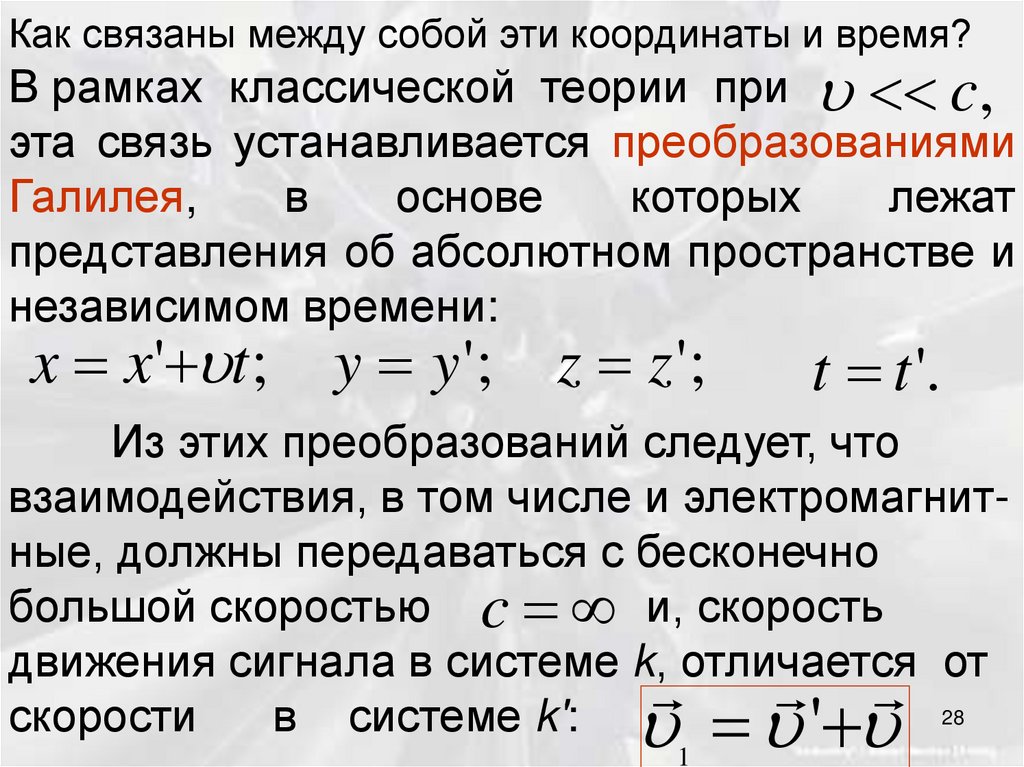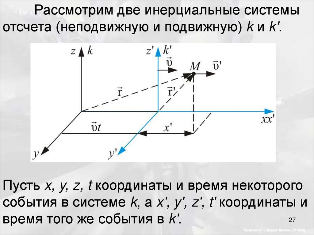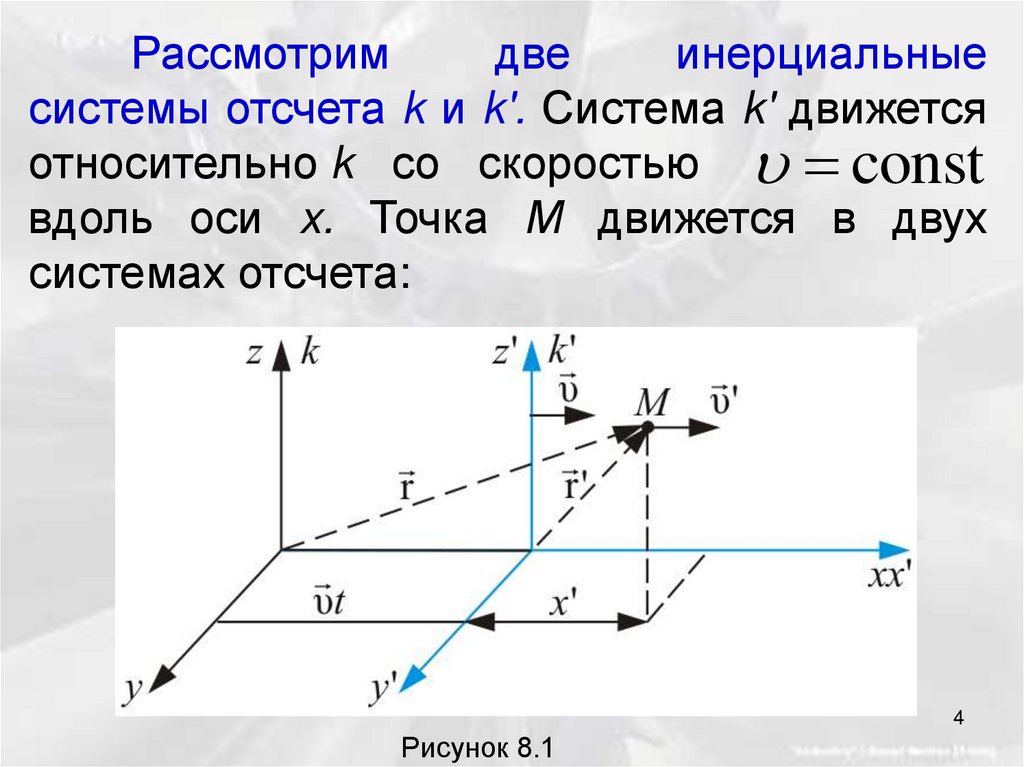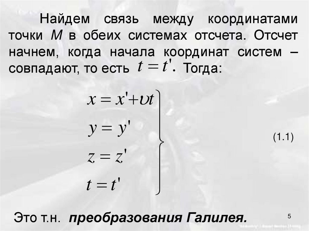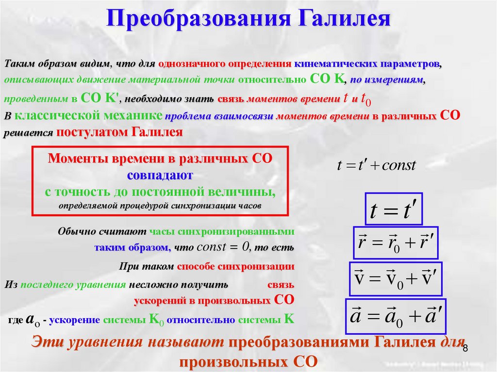 Преобразования ГалилеяТаким образом видим, что для однозначного определения кинематических параметров,