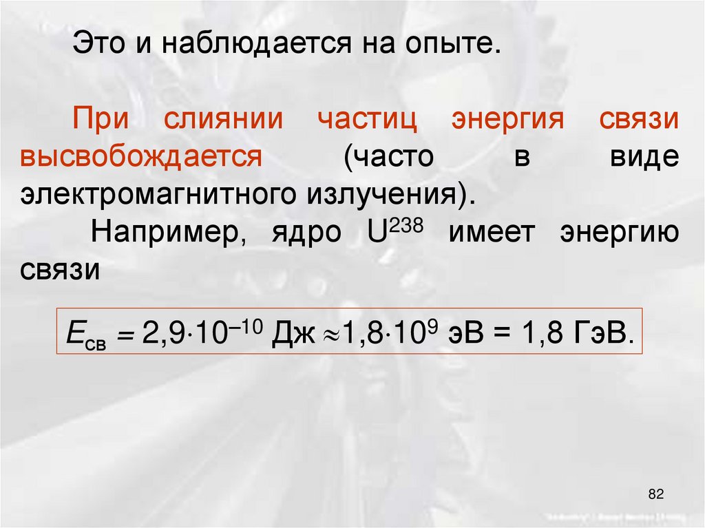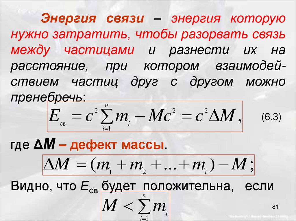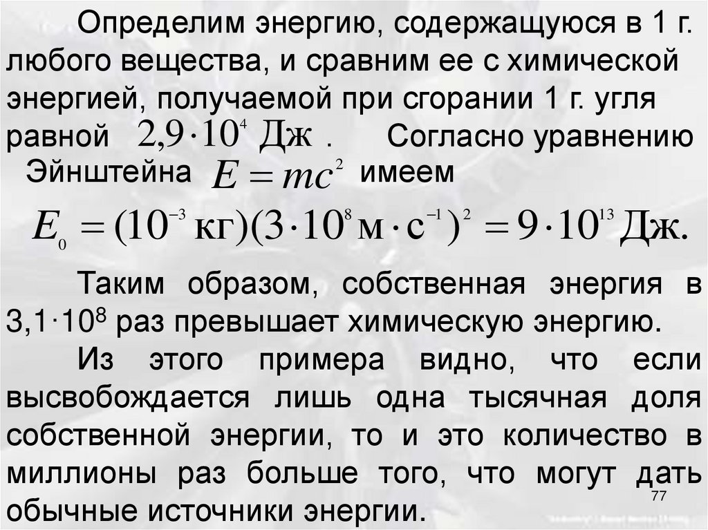При ядерных реакциях выделяется ввиде энергии не более 0,1 % массы