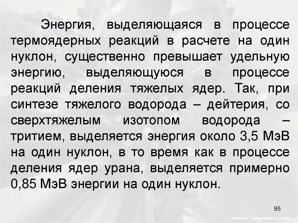 Энергия, выделяющаяся в процессетермоядерных реакций в расчете на один