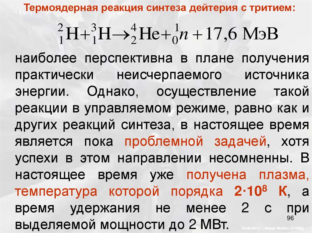 Термоядерная реакция синтеза дейтерия с тритием:2
