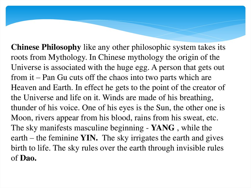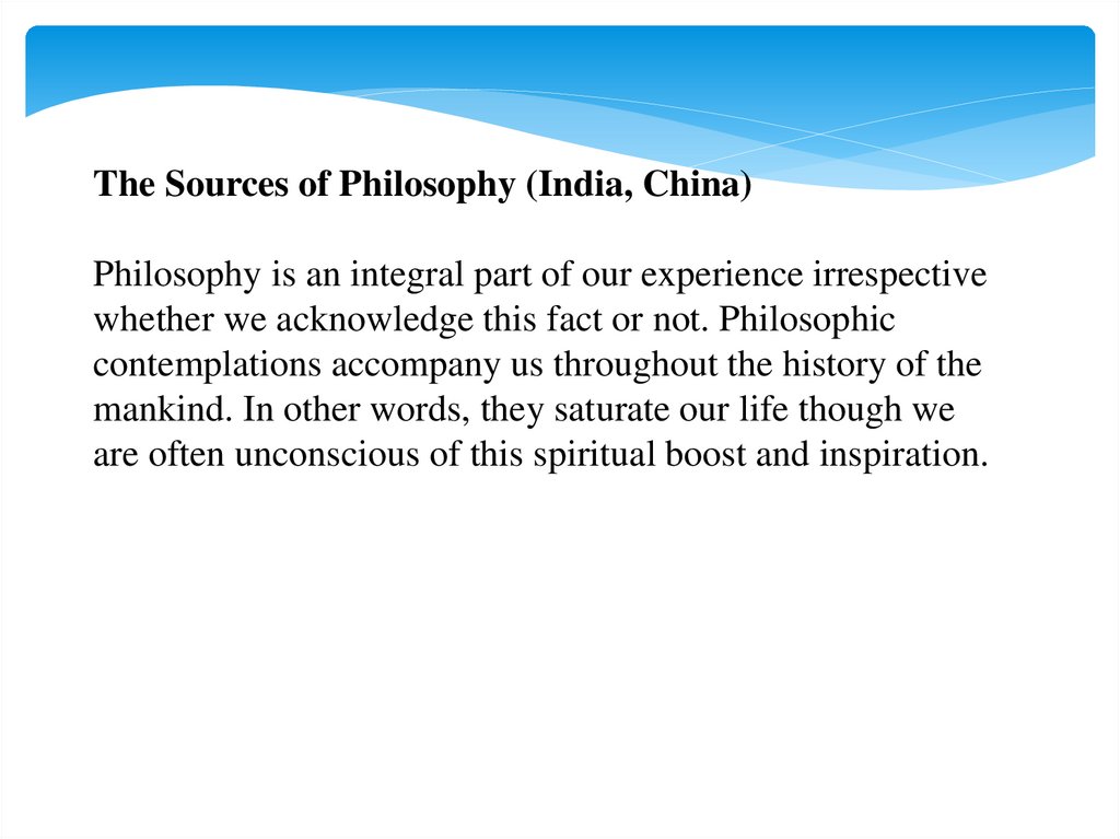 The Sources of Philosophy (India, China)Philosophy is an integral part of our experience irrespective
