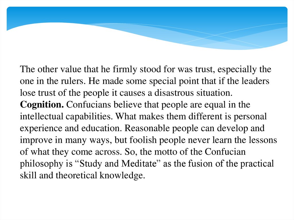 Cognition. Confucians believe that people are equal in the