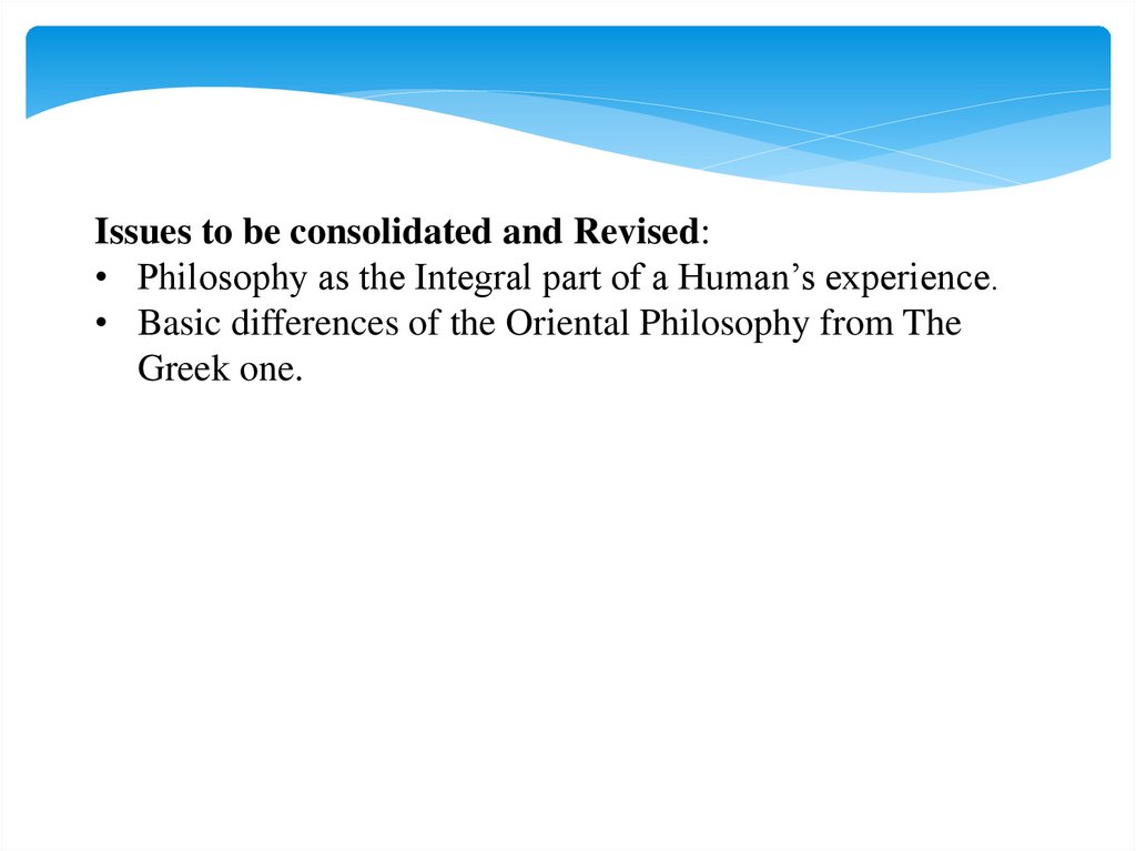 Issues to be consolidated and Revised:• Philosophy as the Integral part of a Human’s experience.
