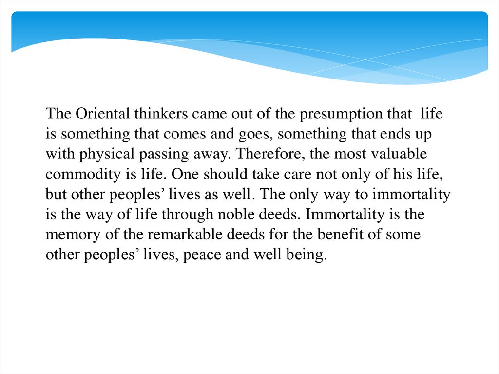The Oriental thinkers came out of the presumption that lifeis something that comes and goes, something that ends up
