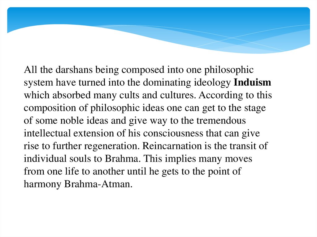All the darshans being composed into one philosophicsystem have turned into the dominating ideology Induism