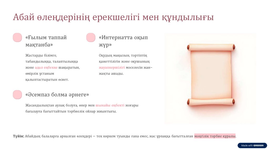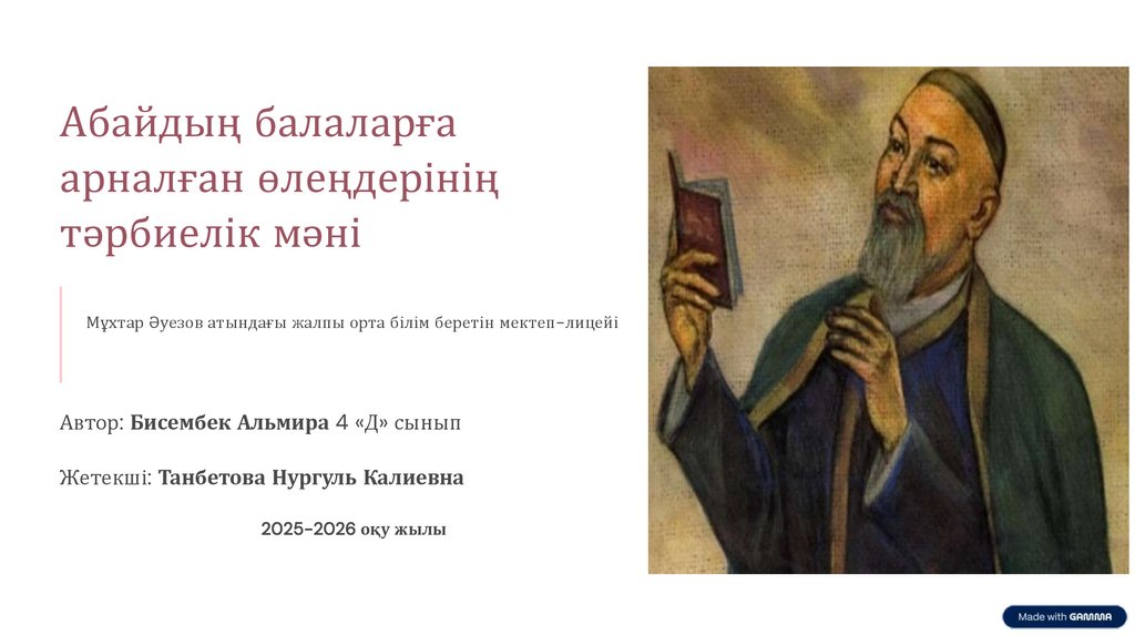 Абай өлеңдерінің ерекшелігі мен құндылығы«Ғылым таппай