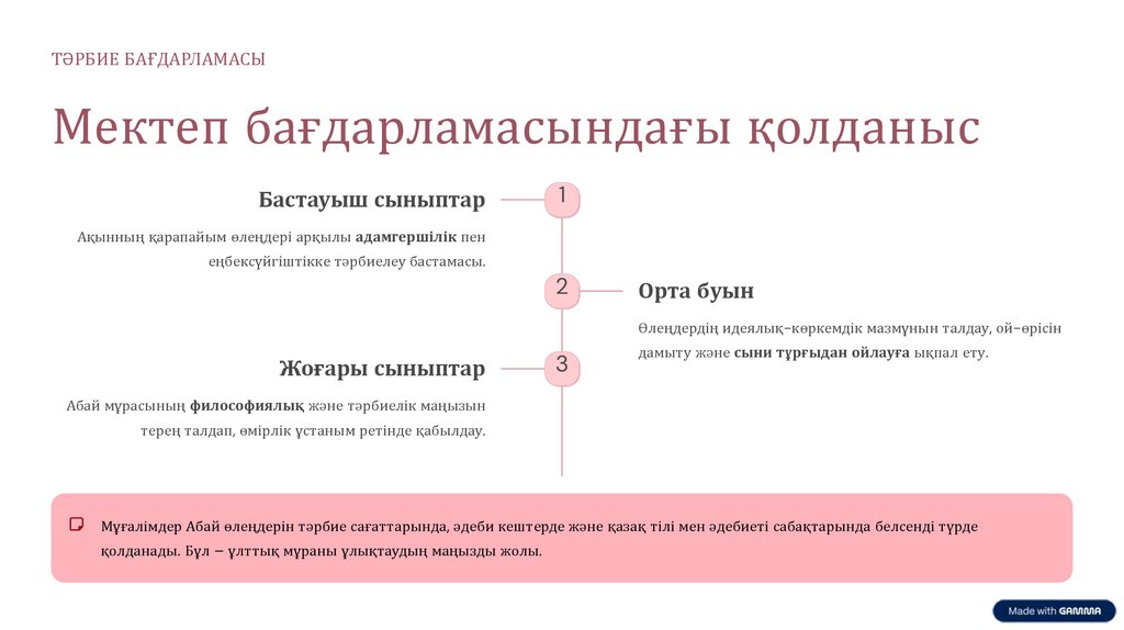 ТӘРБИЕ БАҒДАРЛАМАСЫМектеп бағдарламасындағы қолданыс