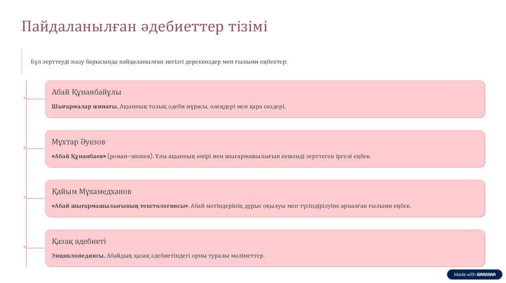 Пайдаланылған әдебиеттер тізіміБұл зерттеуді жазу барысында пайдаланылған негізгі дереккөздер мен ғылыми еңбектер:
