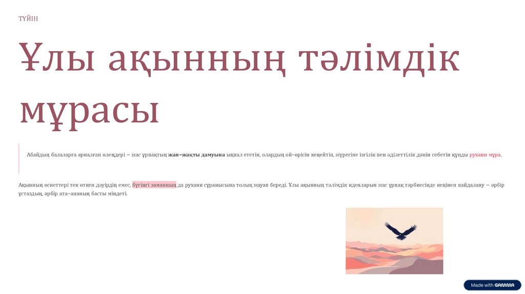 Абай мұрасының философиялық және тәрбиелік маңызын