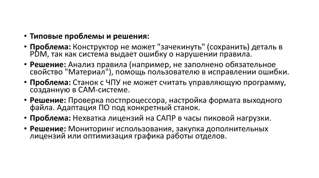 • Типовые проблемы и решения:• Проблема: Конструктор не может "зачекинуть" (сохранить) деталь в
