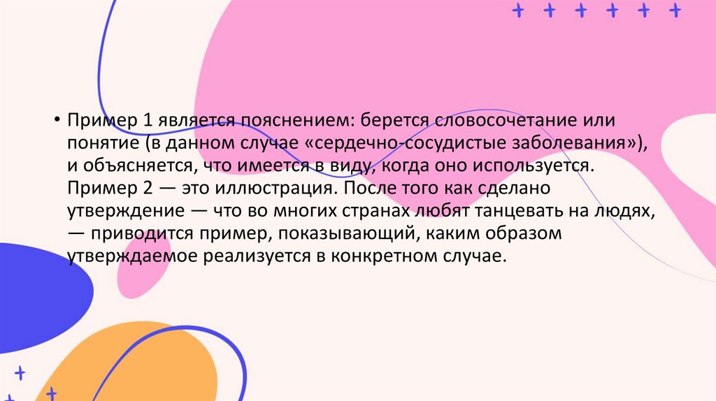 • Пример 1 является пояснением: берется словосочетание илипонятие (в данном случае «сердечно-сосудистые заболевания»),