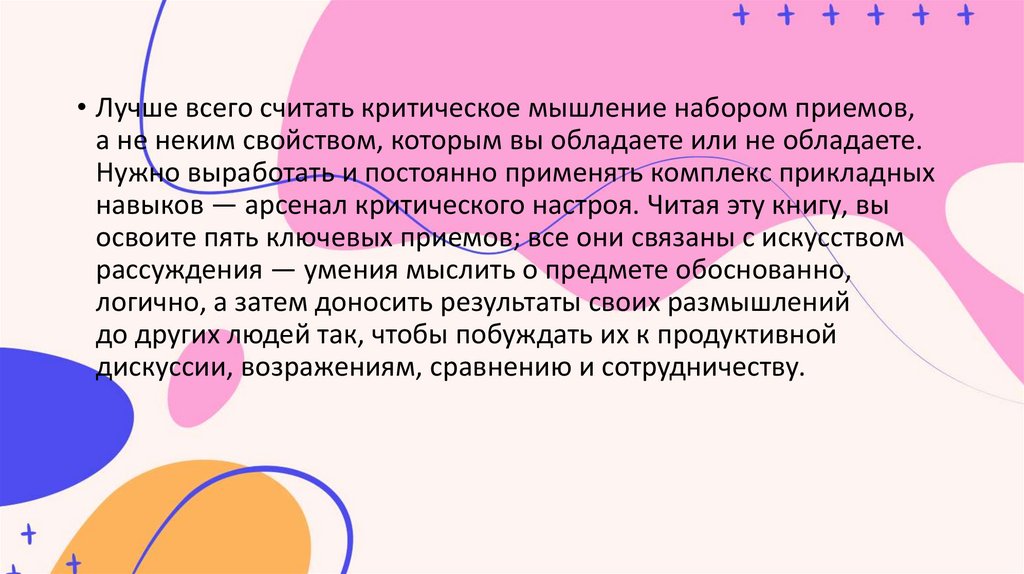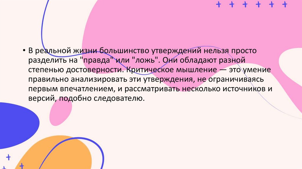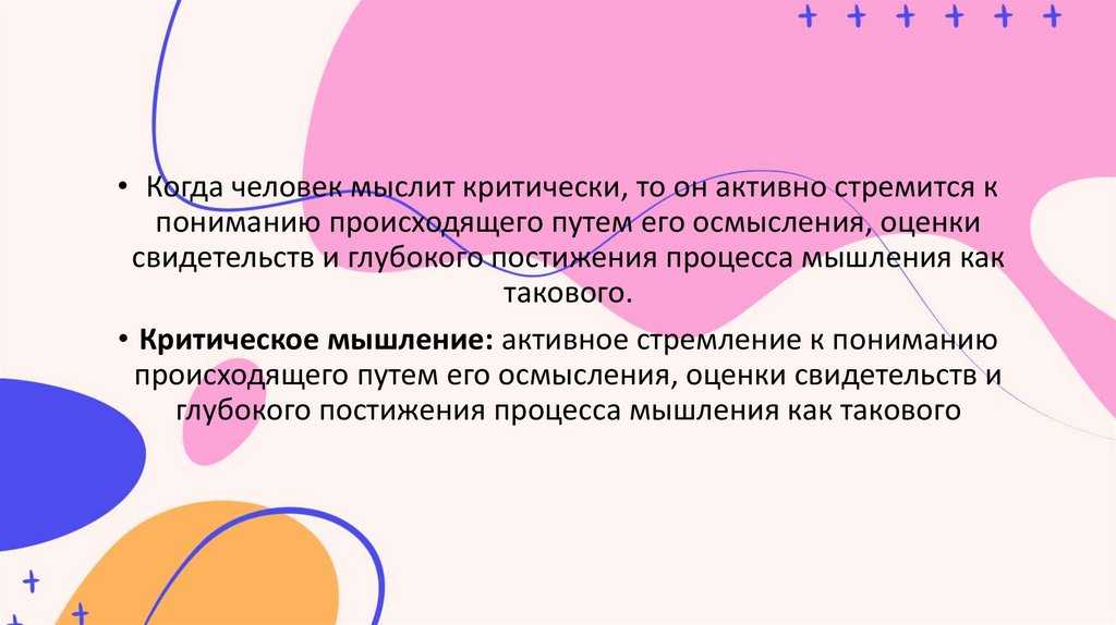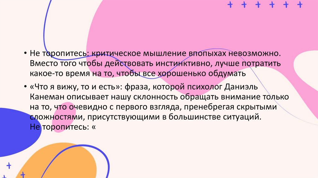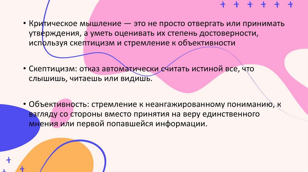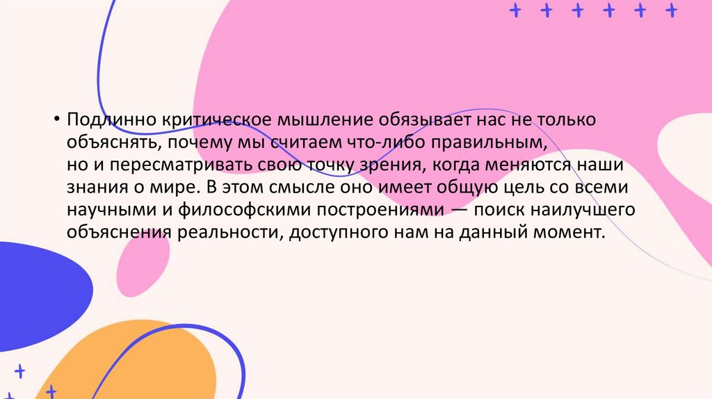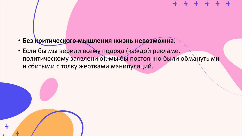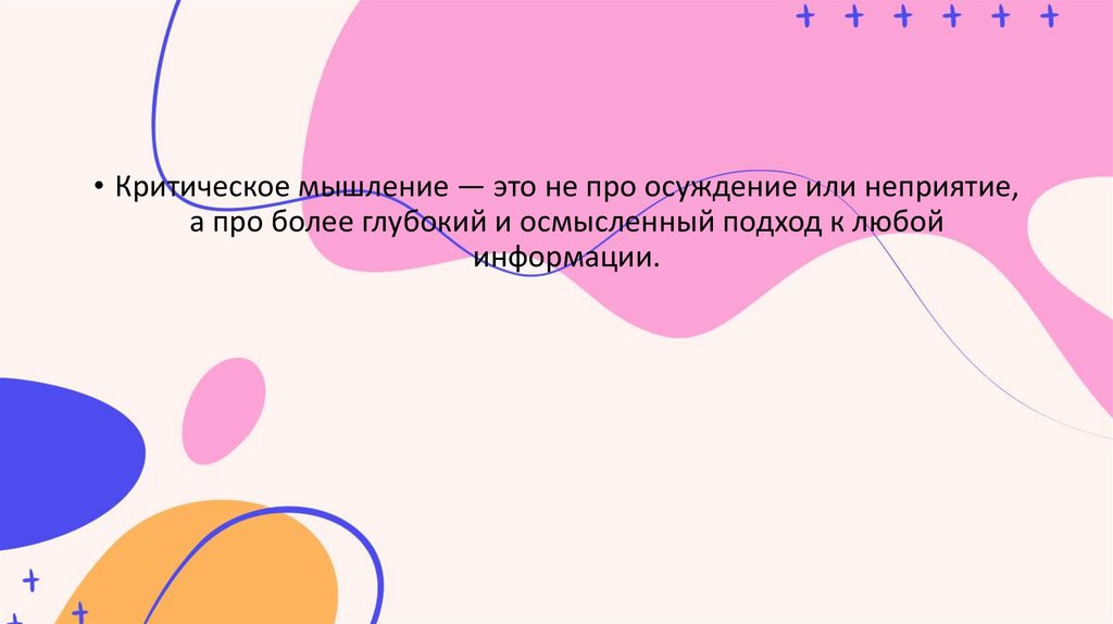 • Критическое мышление — это не про осуждение или неприятие,а про более глубокий и осмысленный подход к любой