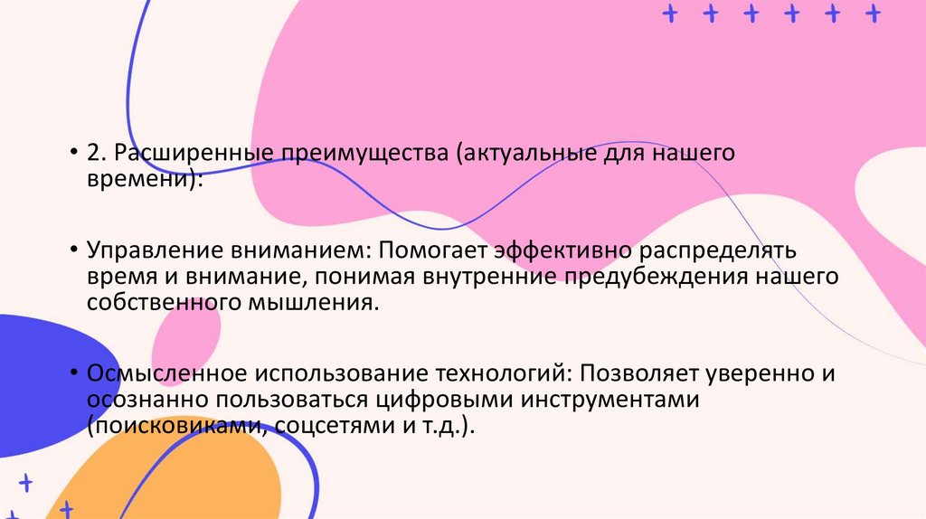 • 2. Расширенные преимущества (актуальные для нашеговремени):