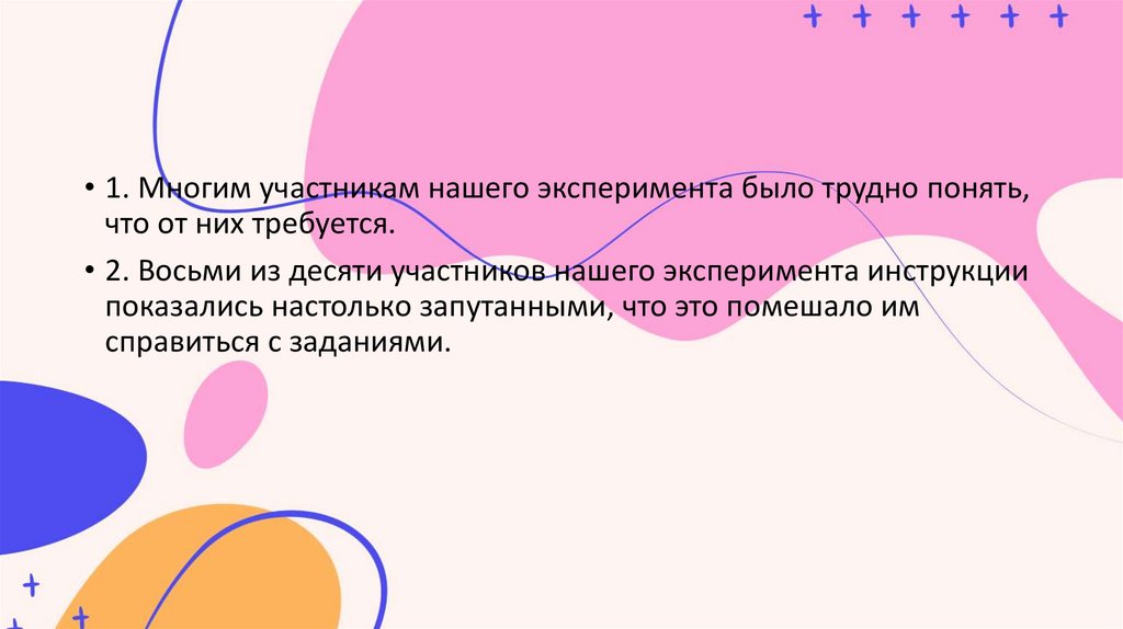 • 1. Многим участникам нашего эксперимента было трудно понять,что от них требуется.